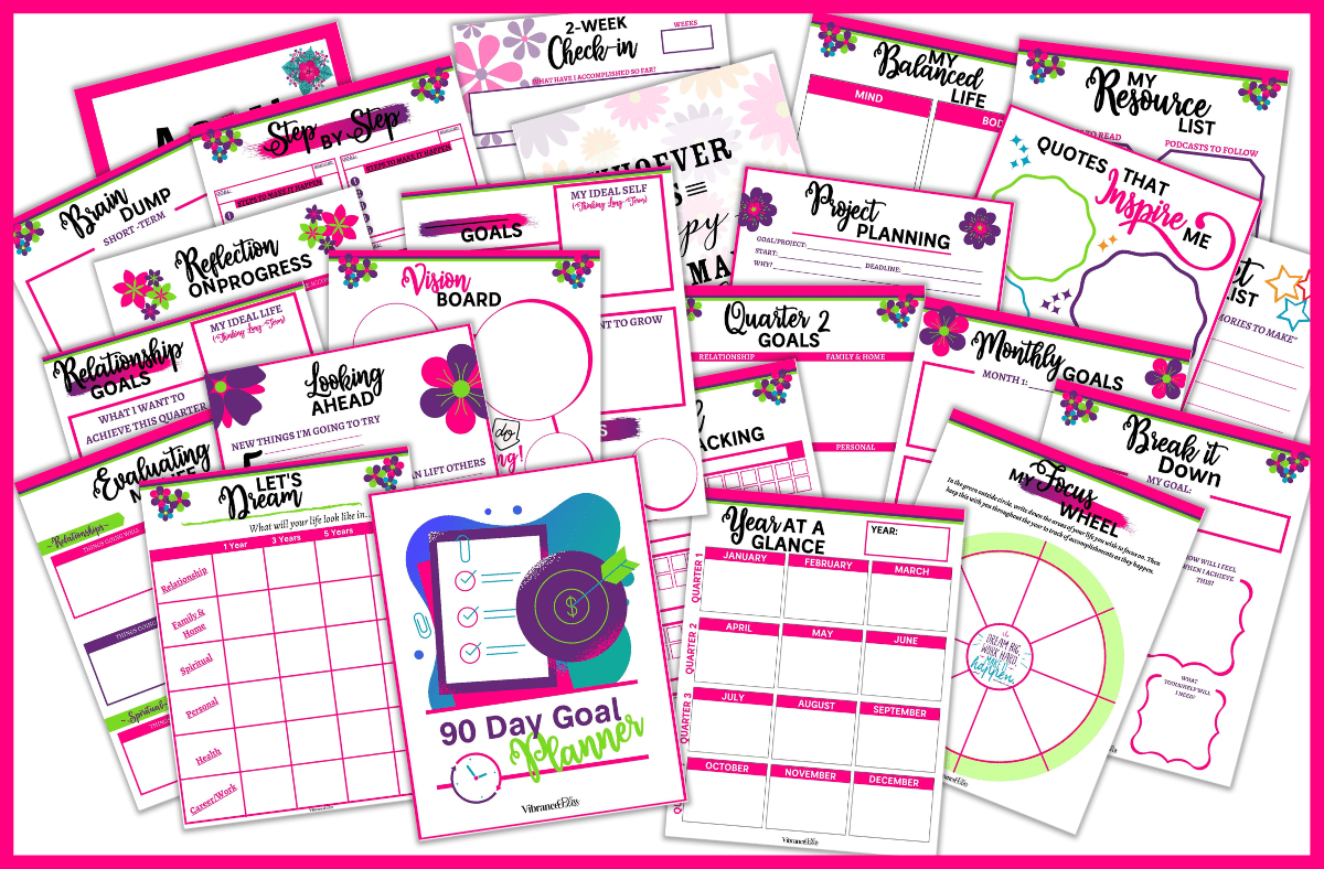 - Record your progress and the resources available as you work through each 90 day Quarter by evaluating progress and refining your goals.