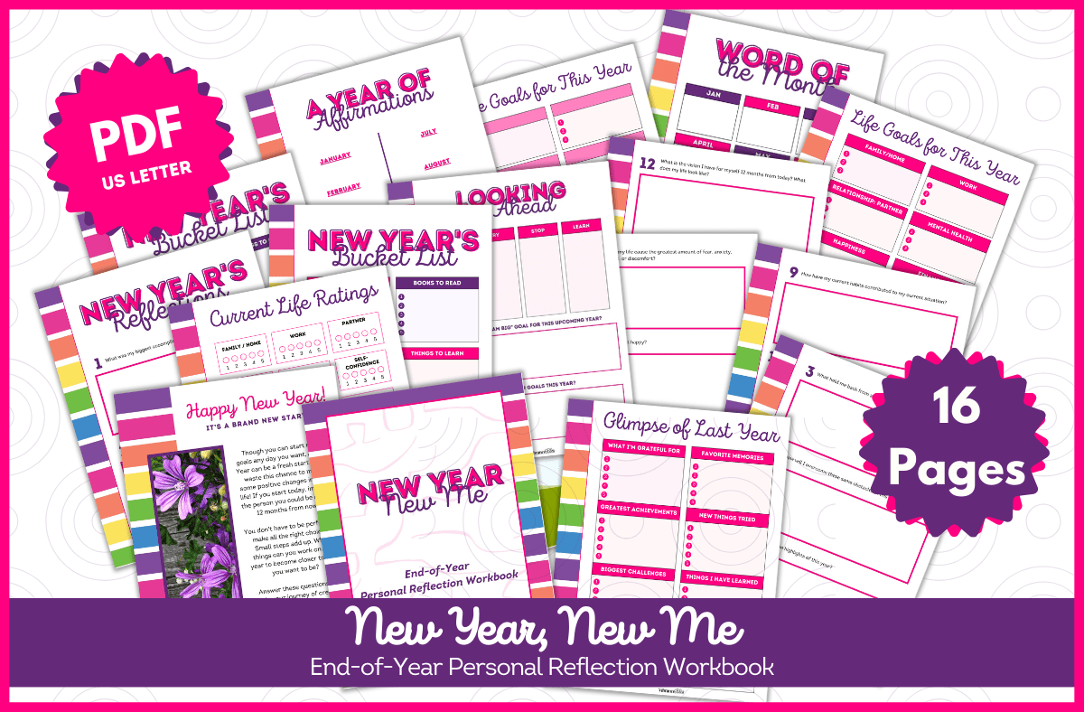 - New Years Reflections – 13 Journal prompts reflecting on what went well last year… and what didn’t. Use your responses to these questions to help you form your goals for next year.